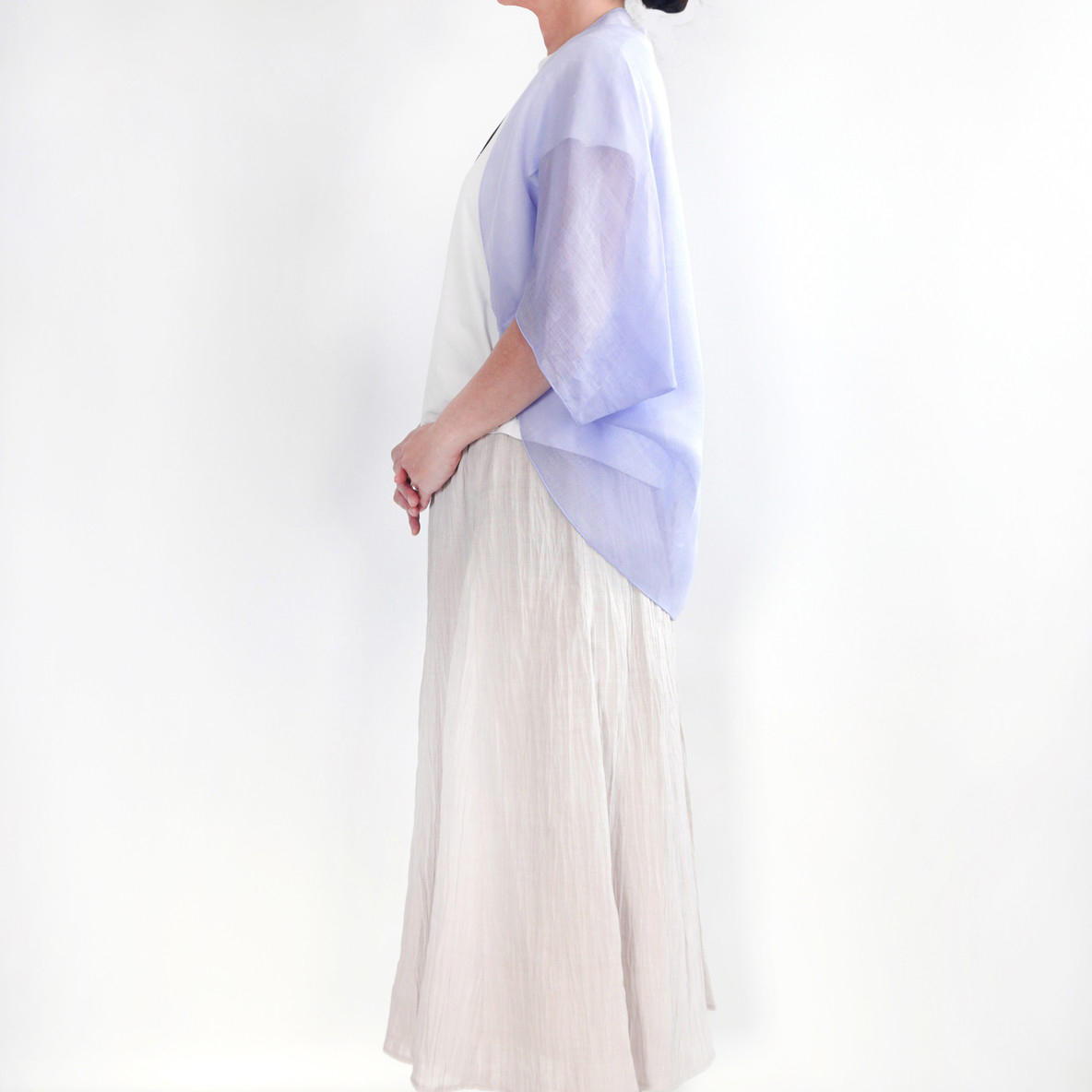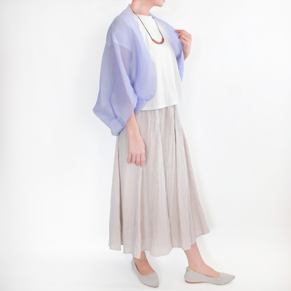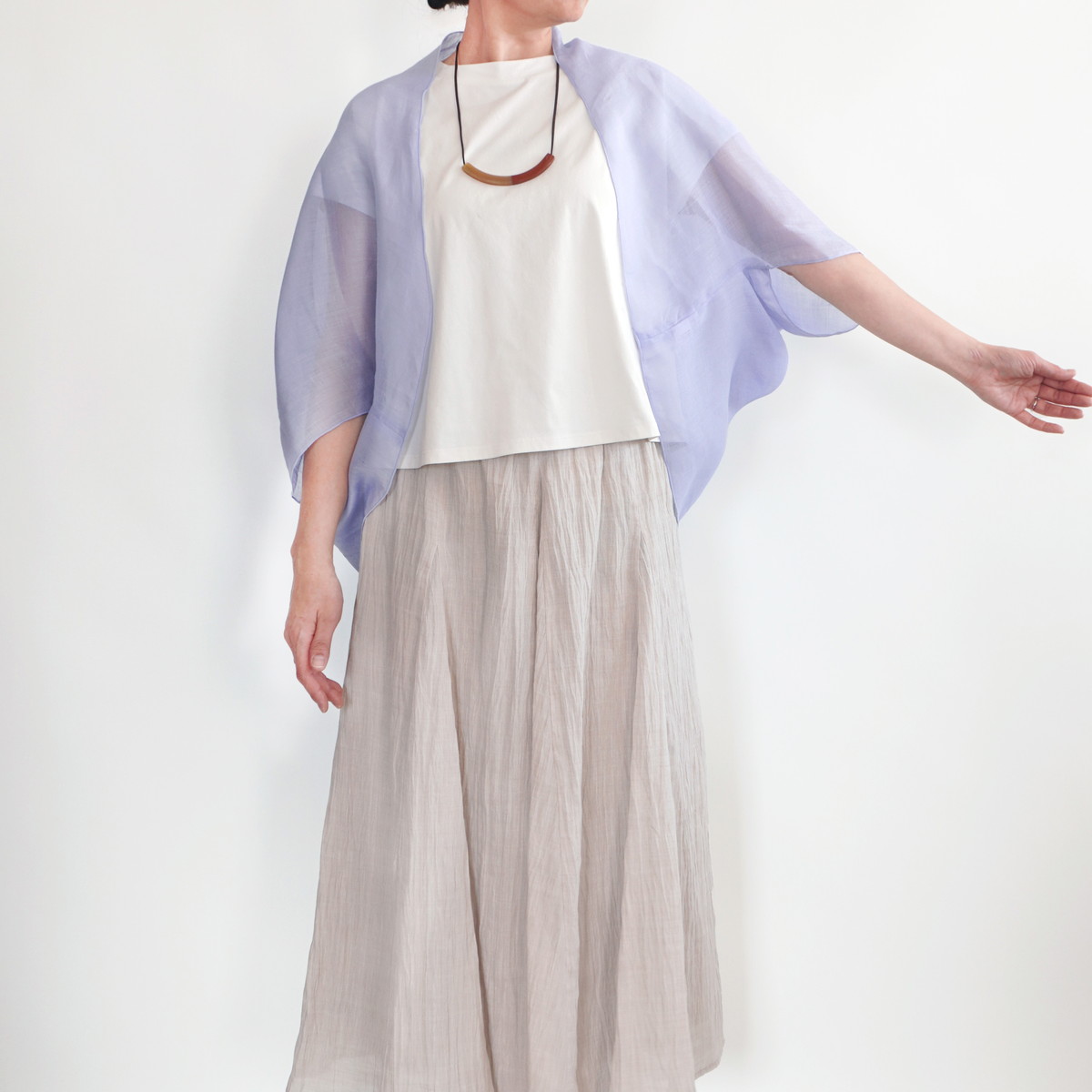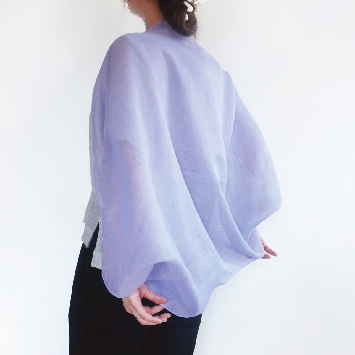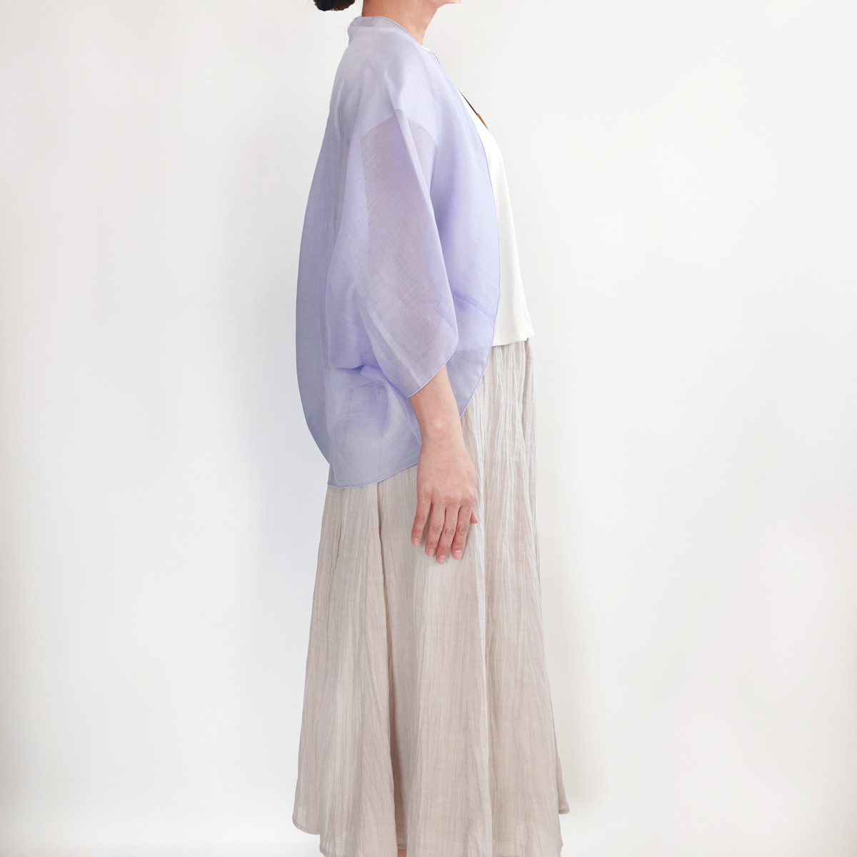 | 商品名 | 麻のオーガンジーボレロ | デザイン | 色 | ラベンダー | |