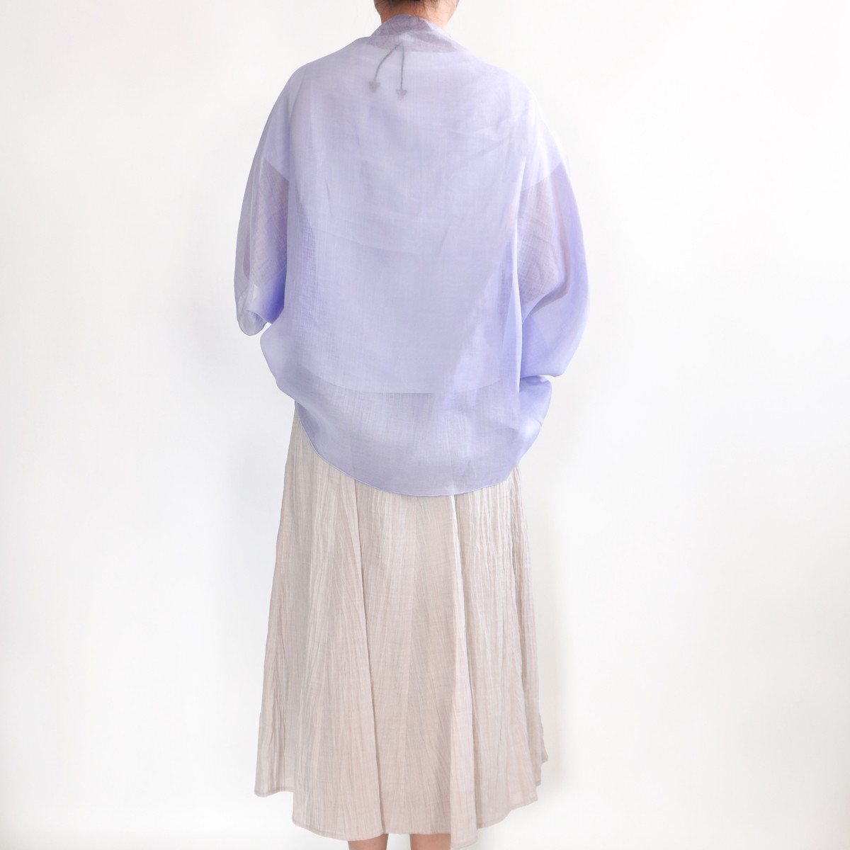 ゆったりサイズなのでパンツスタイルにも合わせやすく、シンプルな色合いなのでお洋服のコーディネートもしやすい一着です。屋外では日差しを優しく遮り、屋内では冷房対策にお使い頂けます。