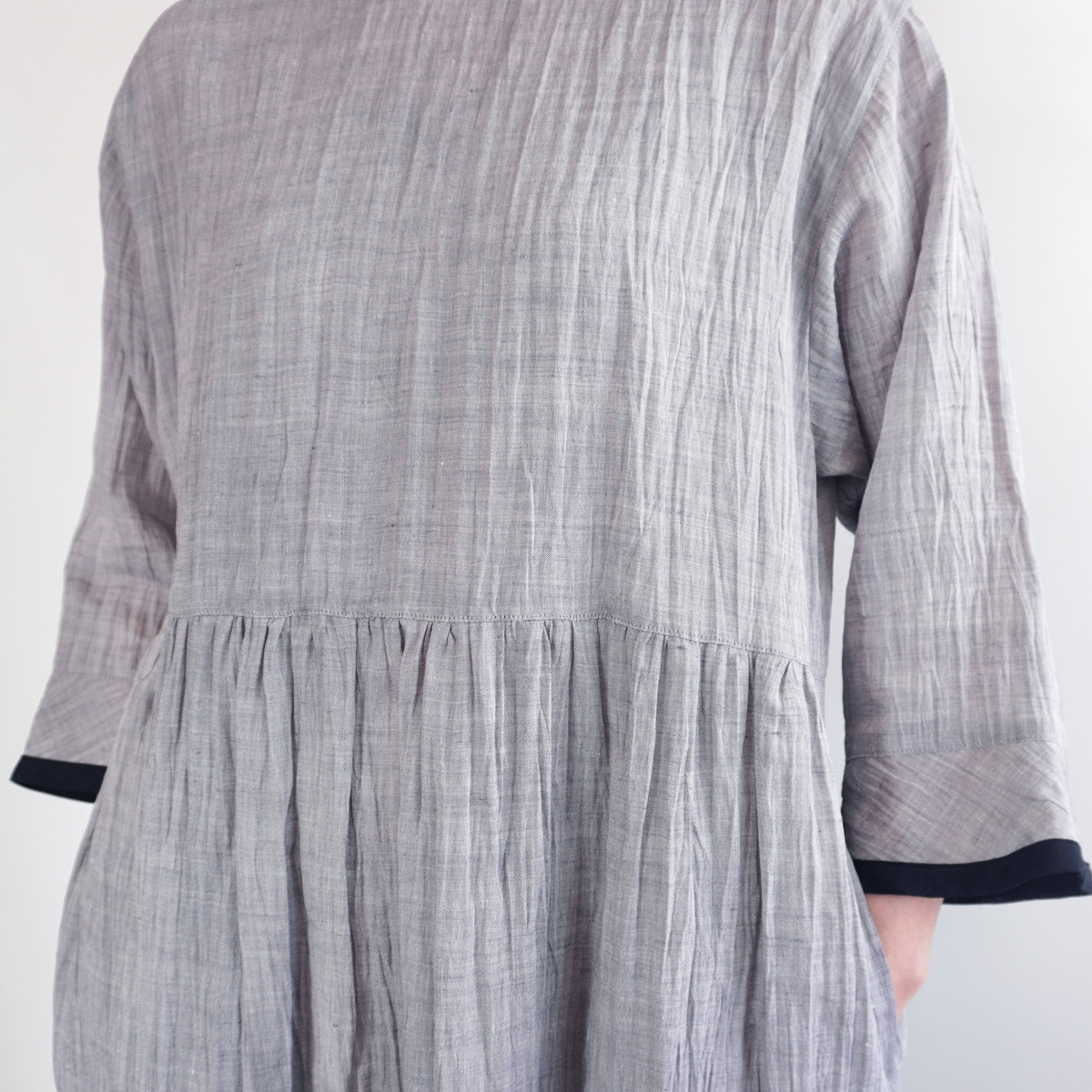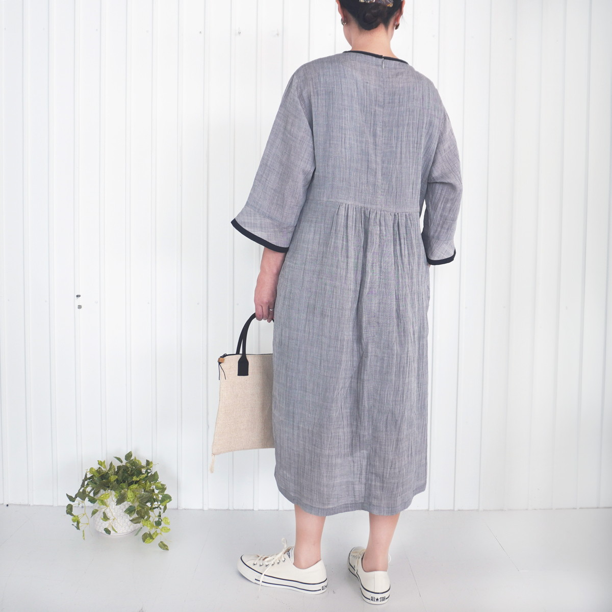 | 商品名 | 縮 配色ギャザーワンピース | デザイン | 色 | 淡鼠 | |