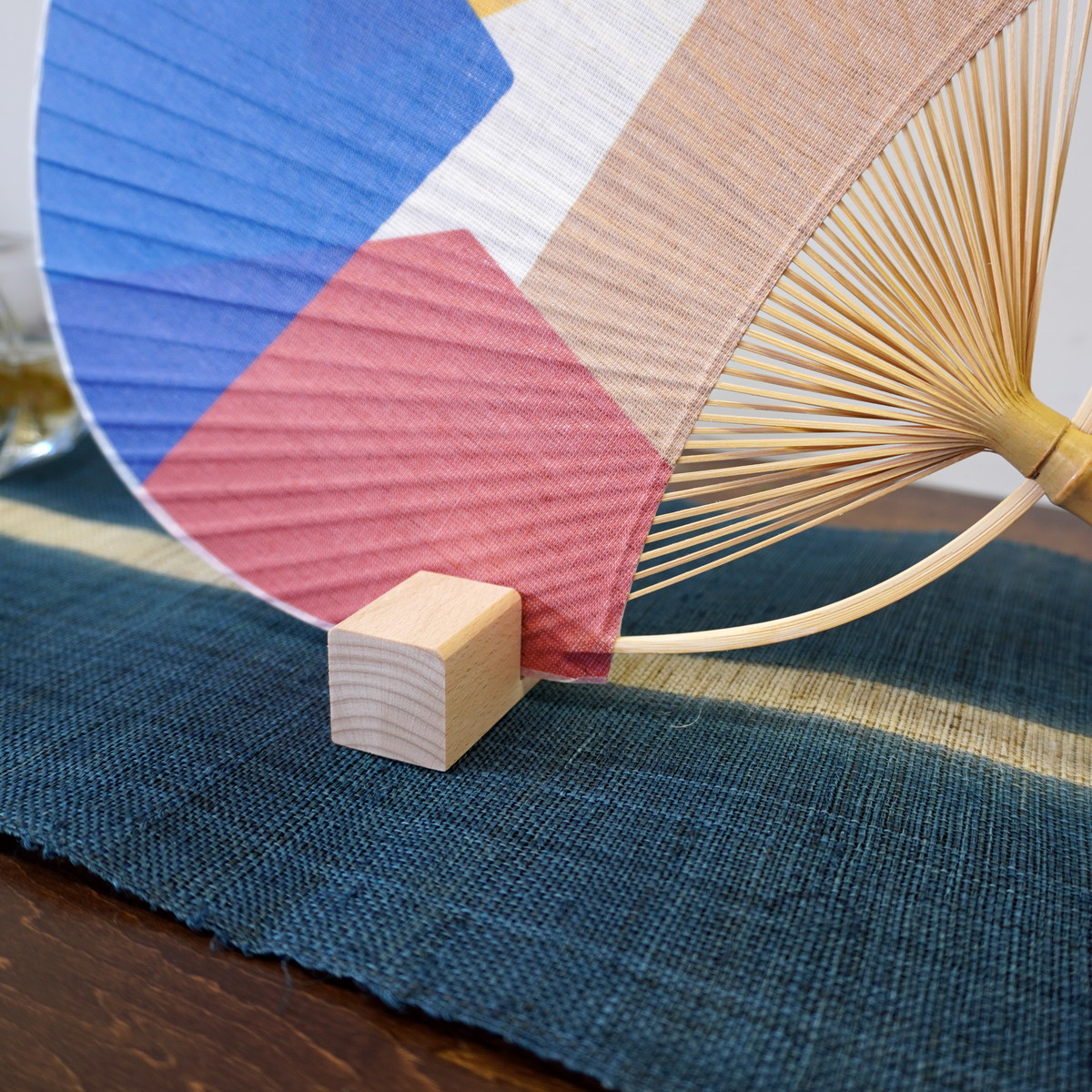 うちわをさりげなく美しく飾れる、IONOオリジナルの木製のうちわ立て「角-Kaku」です。