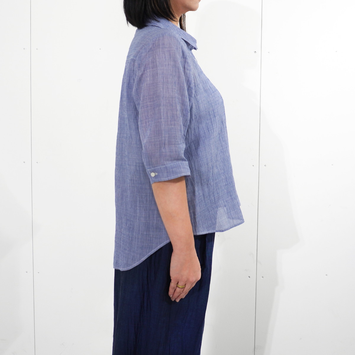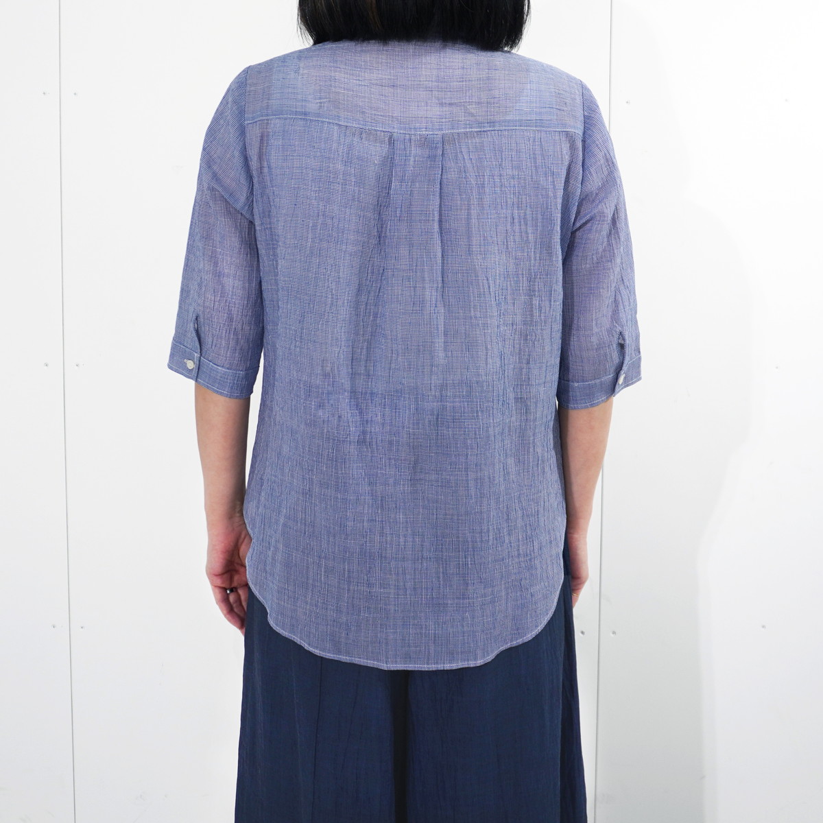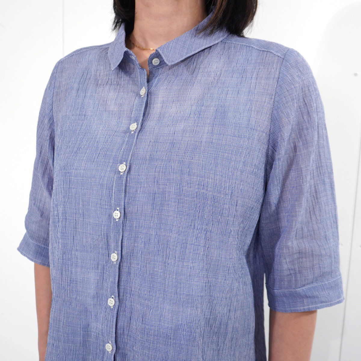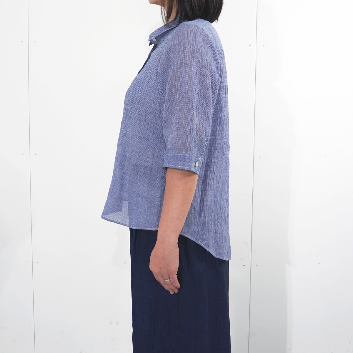 商品名 縮 六分袖ブラウス デザイン ギンガムチェック