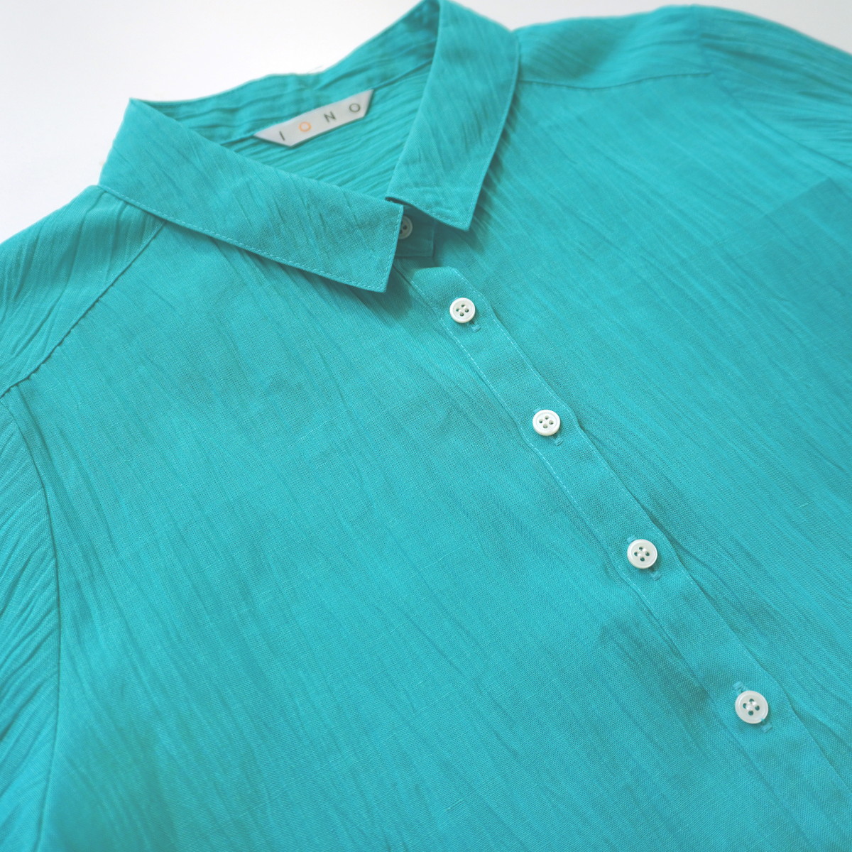 こちらの洋服は新潟県小千谷市の伝統織物「小千谷縮/おぢやちぢみ」をベースに改良を加えた自社オリジナル「縮布/ちぢみ布」を素材に用いています。質感は非常にサラッとしていて汗ばむ季節も肌にまとわりつかず爽やかな着心地です。また、軽くて丈夫な上に取り扱いも容易で、手洗いは勿論ネットに入れて洗濯機でも洗えます。