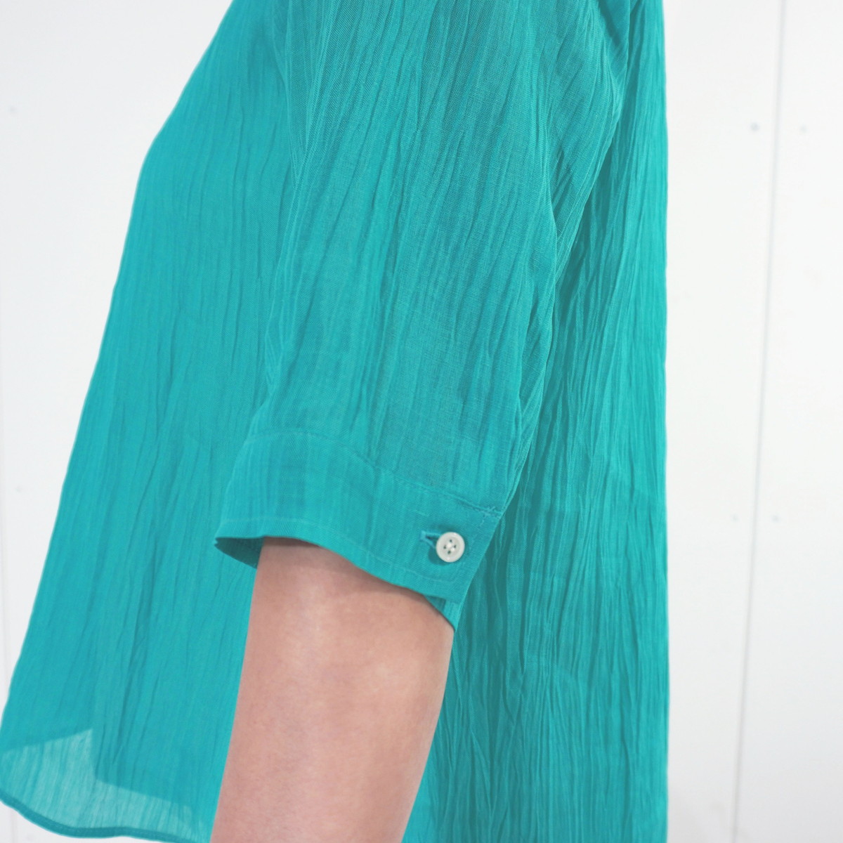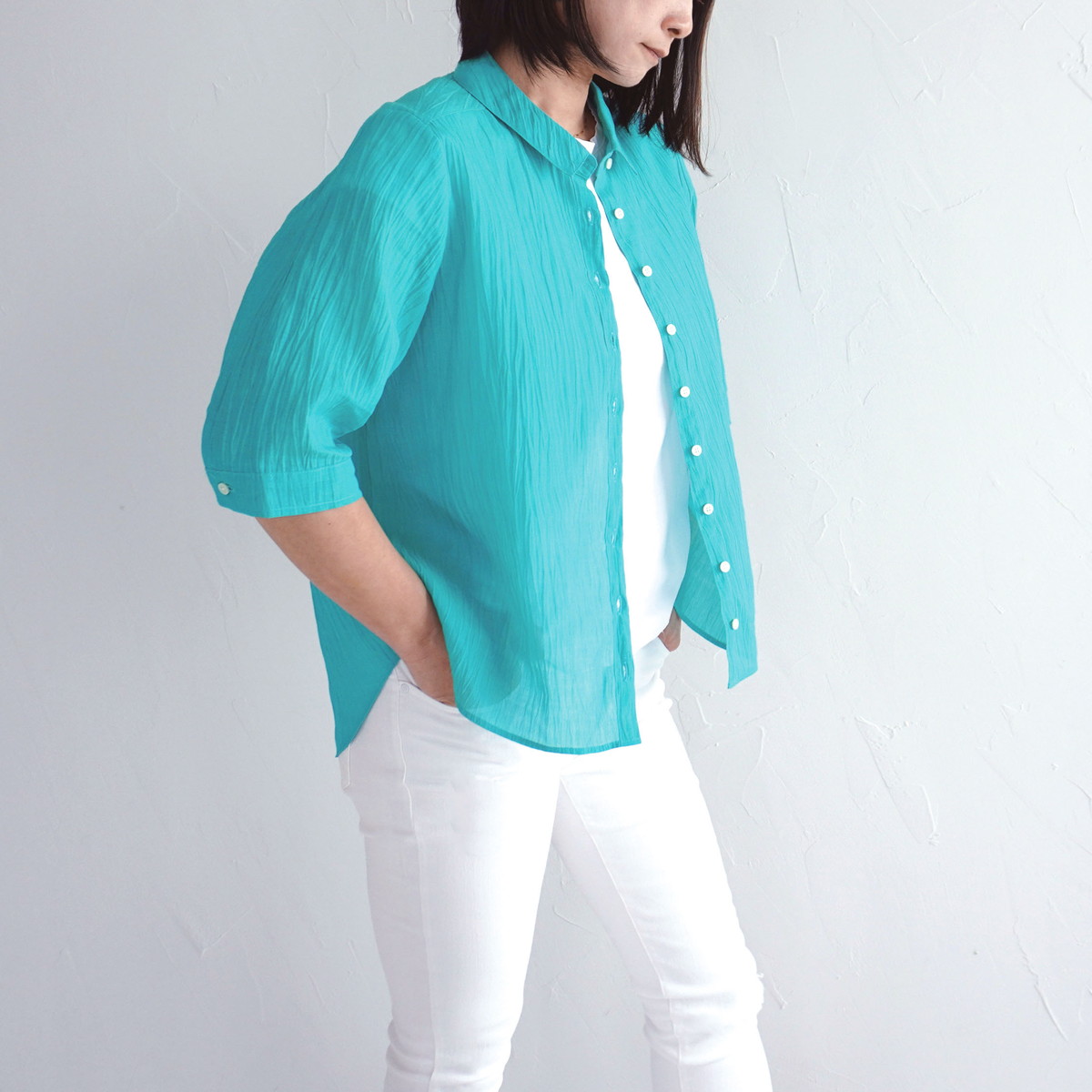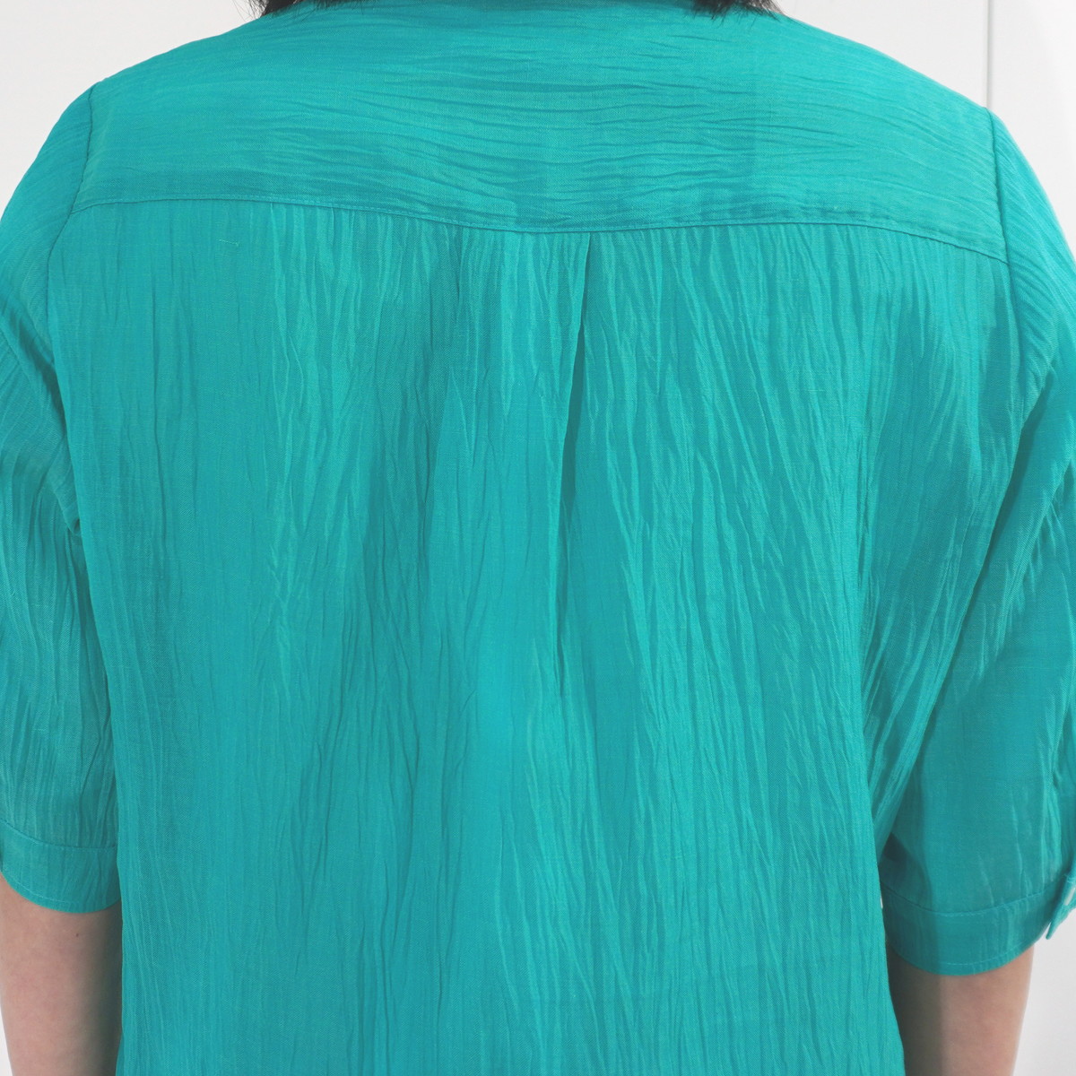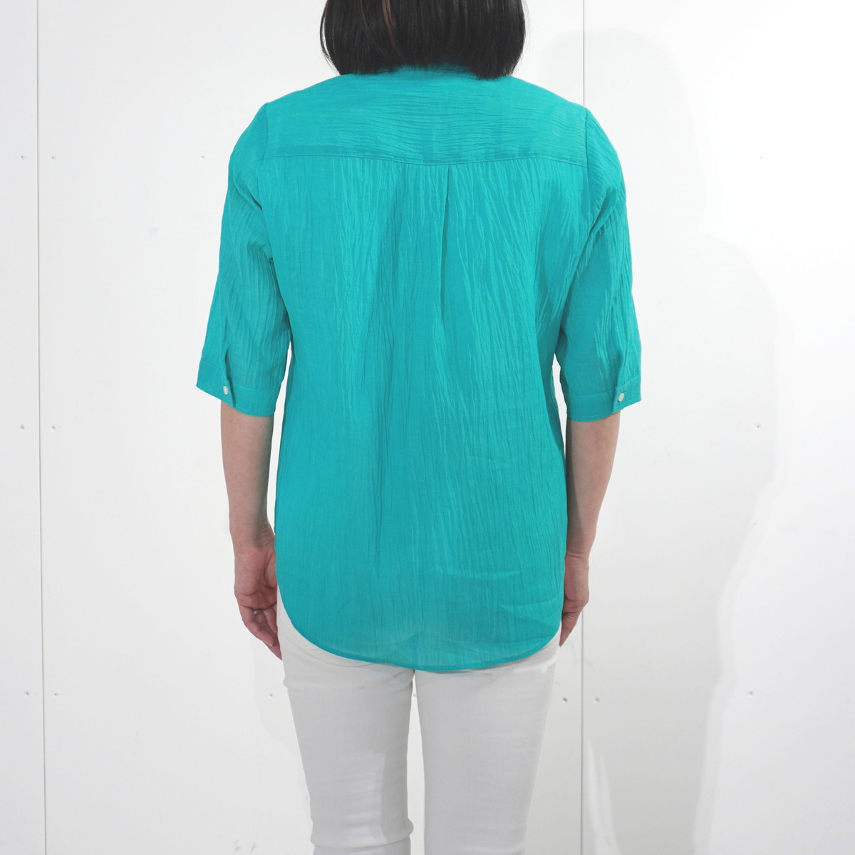 | 商品名 | 縮 六分袖ブラウス | デザイン | 色 | エメラルド | |