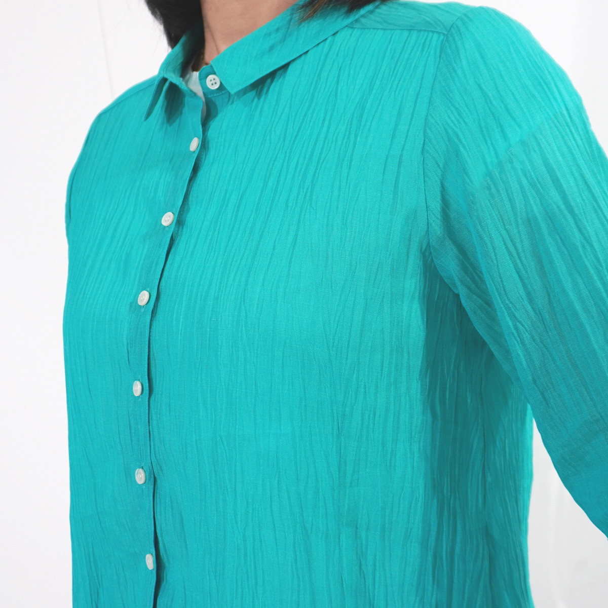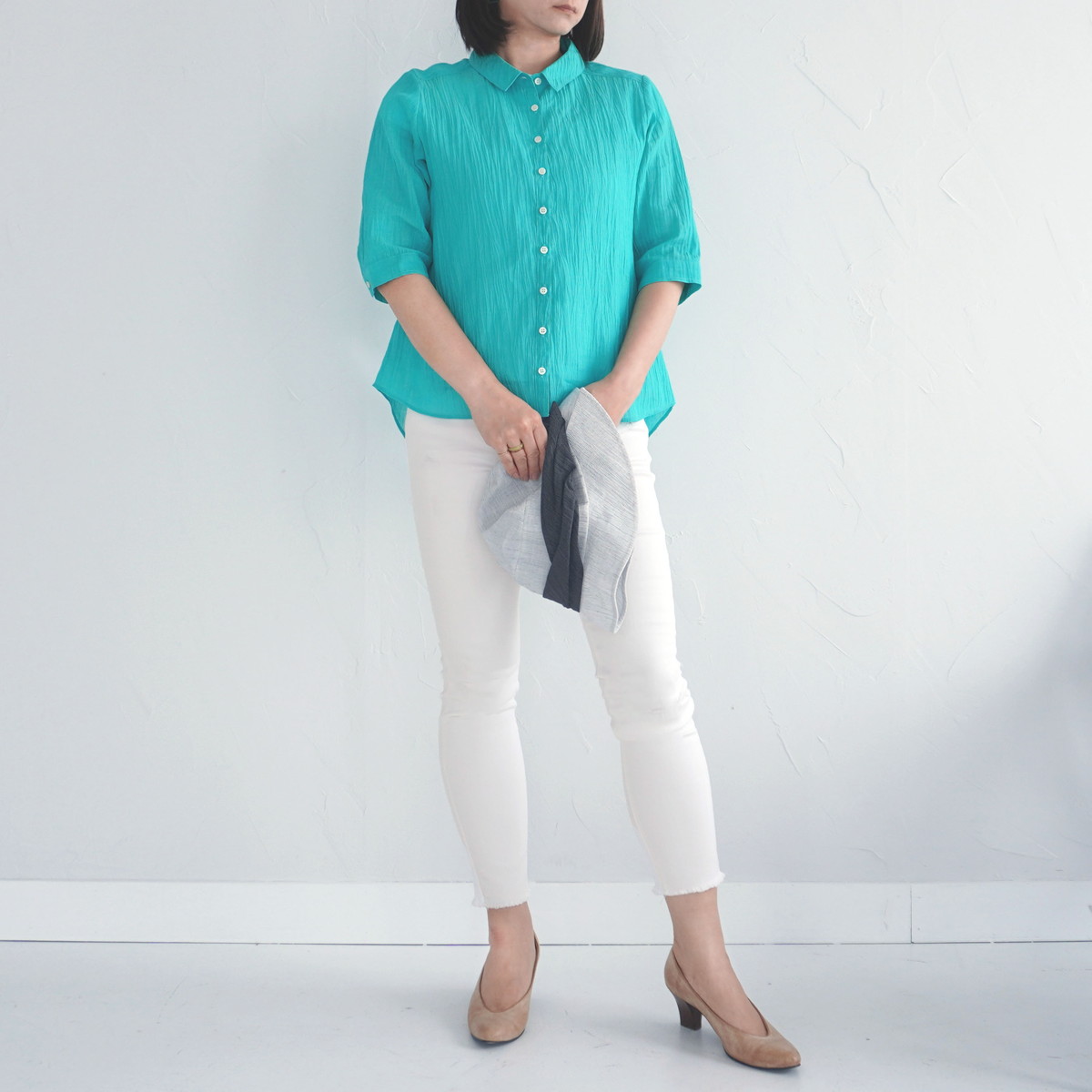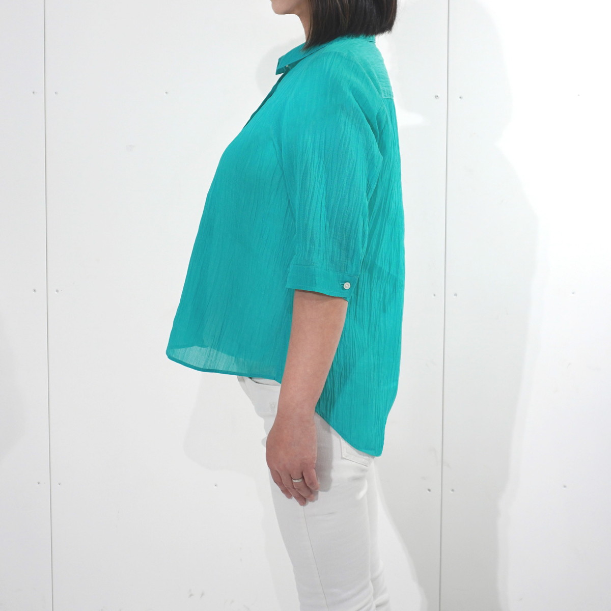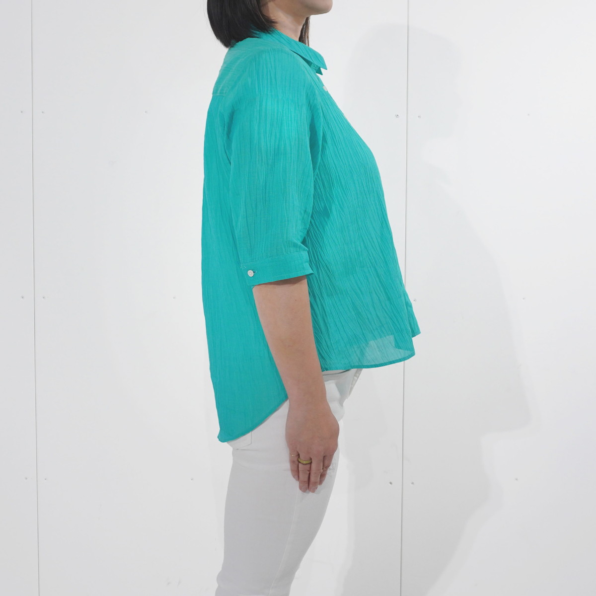 | 商品名 | 縮 六分袖ブラウス | デザイン | 色 | エメラルド | |