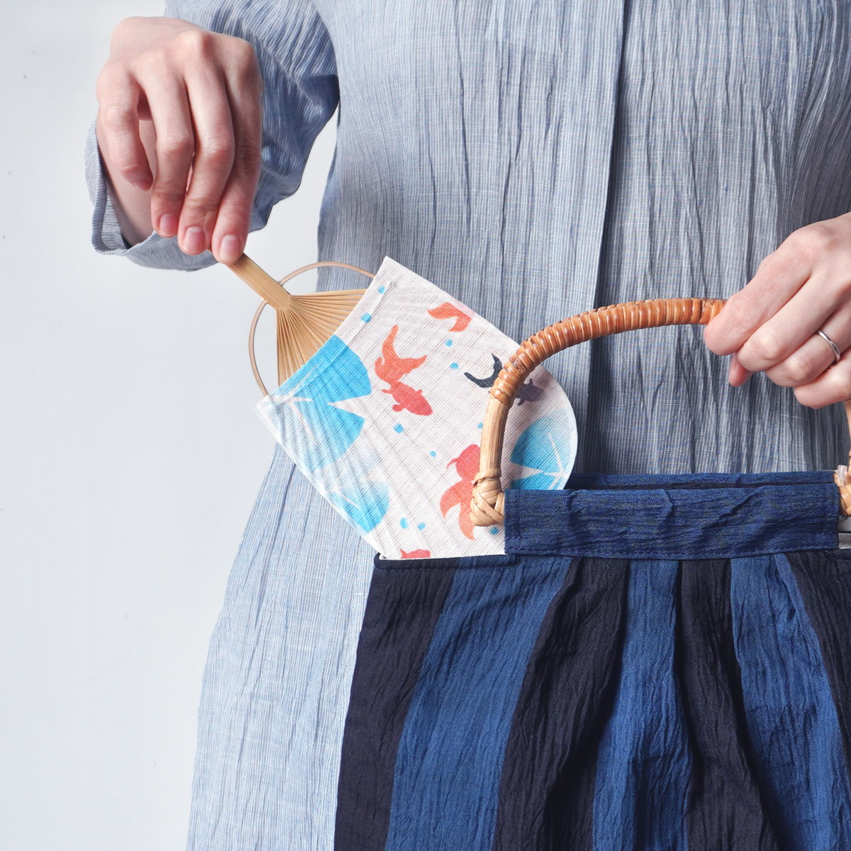 麻ミニうちわ 夏金魚