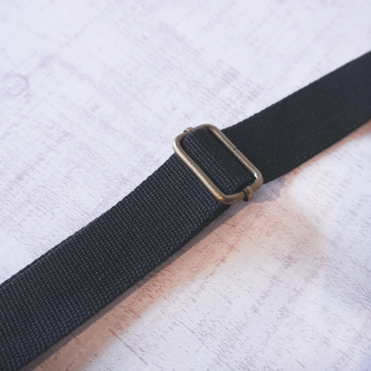 バッグ本体の底に向かって広く作られており、フラップにはマグネットホックがついているため中に入れた物が飛びだしづらい作りになっています。持ち手は3cm幅の太めのアクリル布の持ち手でやわらかく、長時間使用しても肩が痛くなりづらい仕様で、長さも約80~140cmに調整可能です。