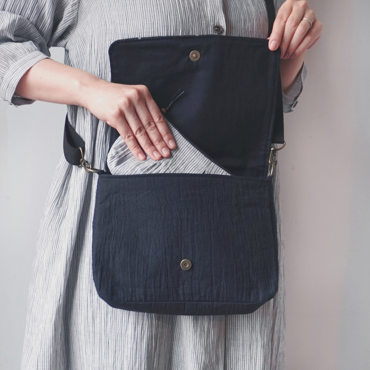 小千谷縮の生地を贅沢に使用した、軽くてさらりとした触感が気持ちいフラップ付きのショルダーバッグです。