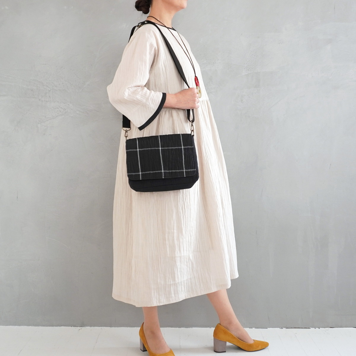 | 商品名 | 小千谷縮フラップショルダーバッグ | デザイン | 格子 | 色 | 黒 |